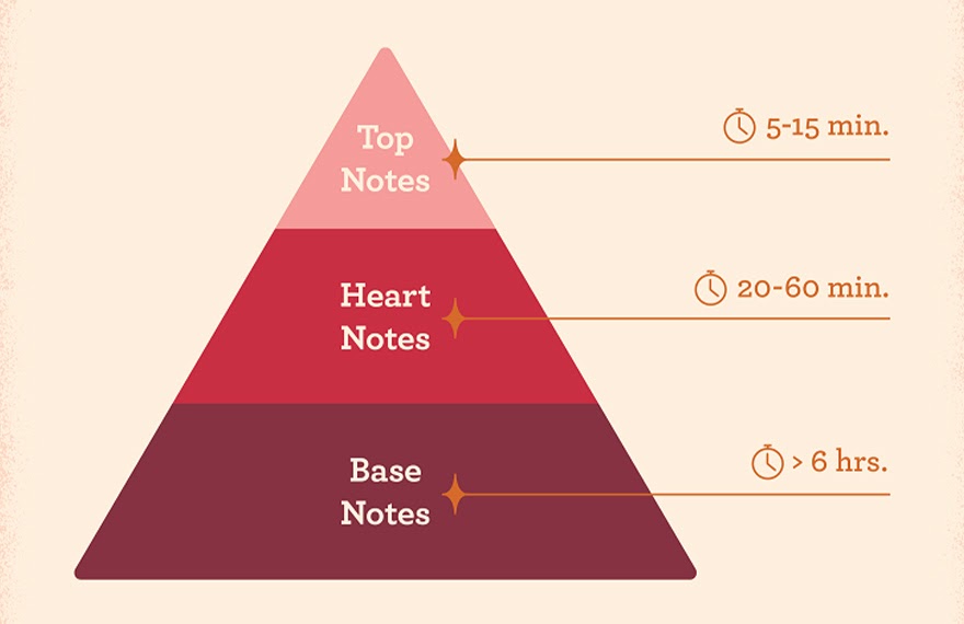 دقیقاً مانند نت‌های موسیقی که یک آهنگ را تشکیل می‌دهند و طیف‌های مختلف رنگی که ترکیب آنها به تبدیل به تابلوی نقاشی می‌شود، نت‌های عطر از پایه‌های اصلی تشکیل دهنده‌ی عطر هستند و از 3 قسمت یا نت تشکیل شده است.